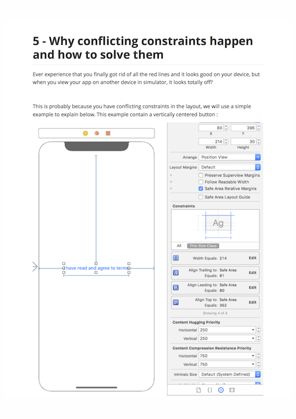 - Step by step explanation of each constraints used to create the layout and how they work.