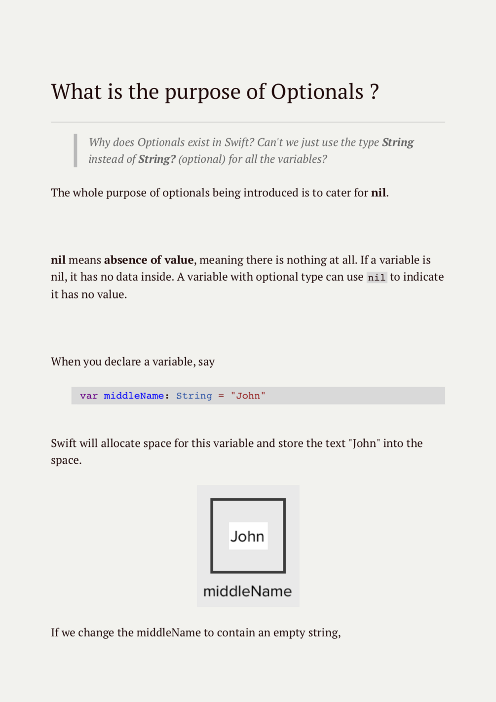 - Explaining various jargons (eg: optional binding, implicitly unwrapped , etc)