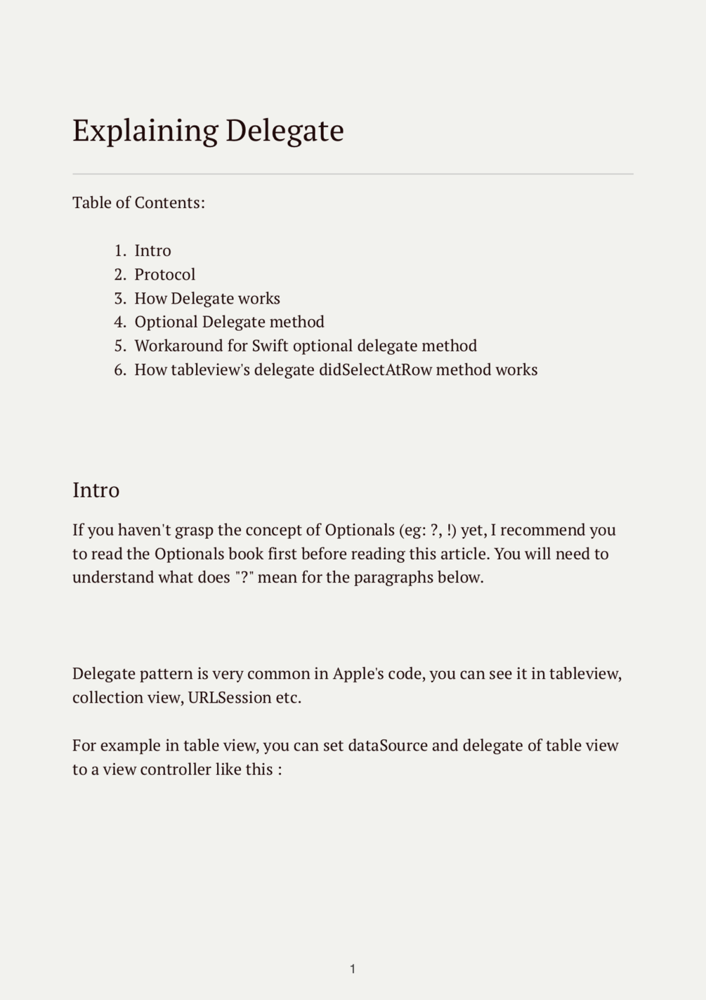 Each book is concise and tightly focused on getting you to understand the concept of and delegate, instead of watching a full iOS development video course and finding on the #11 video, you can finish read the book in 2 hours and continue on with your app projects!